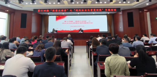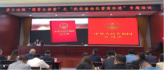 2024年5月是我国第四个“民法典”宣传月,为深入学习习近平法治思想,贯彻落实习近平总书记关于“法治是最好的营商环境”重要论述,在2024年民法典宣传月之际,市国资委深化“法律进企业”活动,于5月10日组织召开优化法治化营商环境专题培训会。市国资委党委委员、副主任张俊华主持讲话,委机关各科室骨干、各市属企业分管负责同志及相关部室负责同志共计90余人参加此次培训。