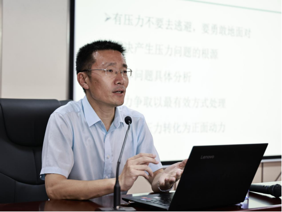 讲座中,赵松涛老师用PPT、图文、视频为职工讲解了心理健康的意义、压力的产生机制、对心身的影响、自我心理调适四个方面的心理健康知识,分析了产生压力的原因、压力对身心造成的影响,传授了管理情绪、缓解压力的方法。通过现场互动,进一步引导职工提升正确的自我认知能力,科学地认识自身的心理世界,增强抗压能力。